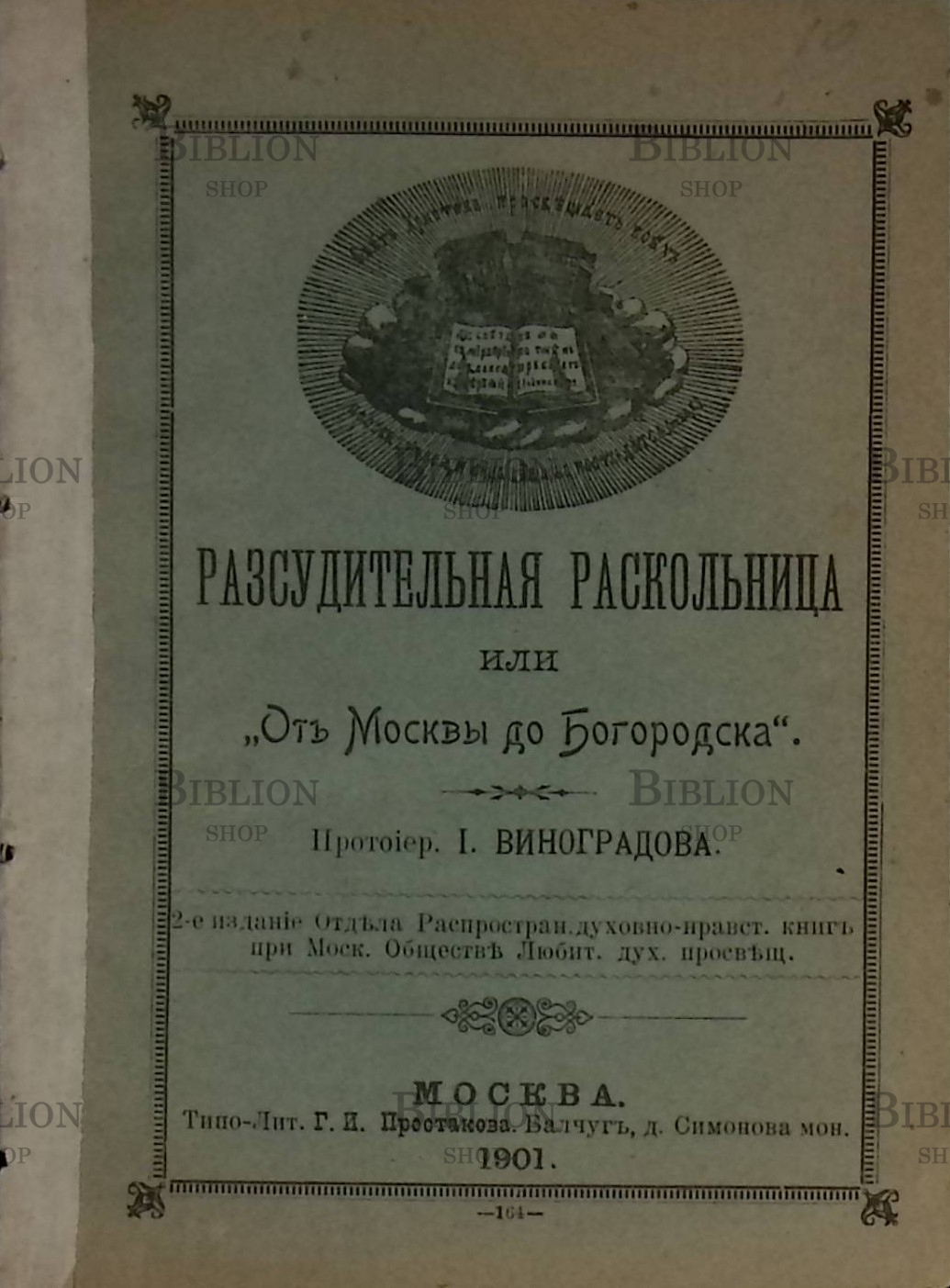 Главная Интернет-магазин Антикварные книги "Рассудительная раскольница, или "От Москвы до Богородска" Протоиерей И. Виноградов