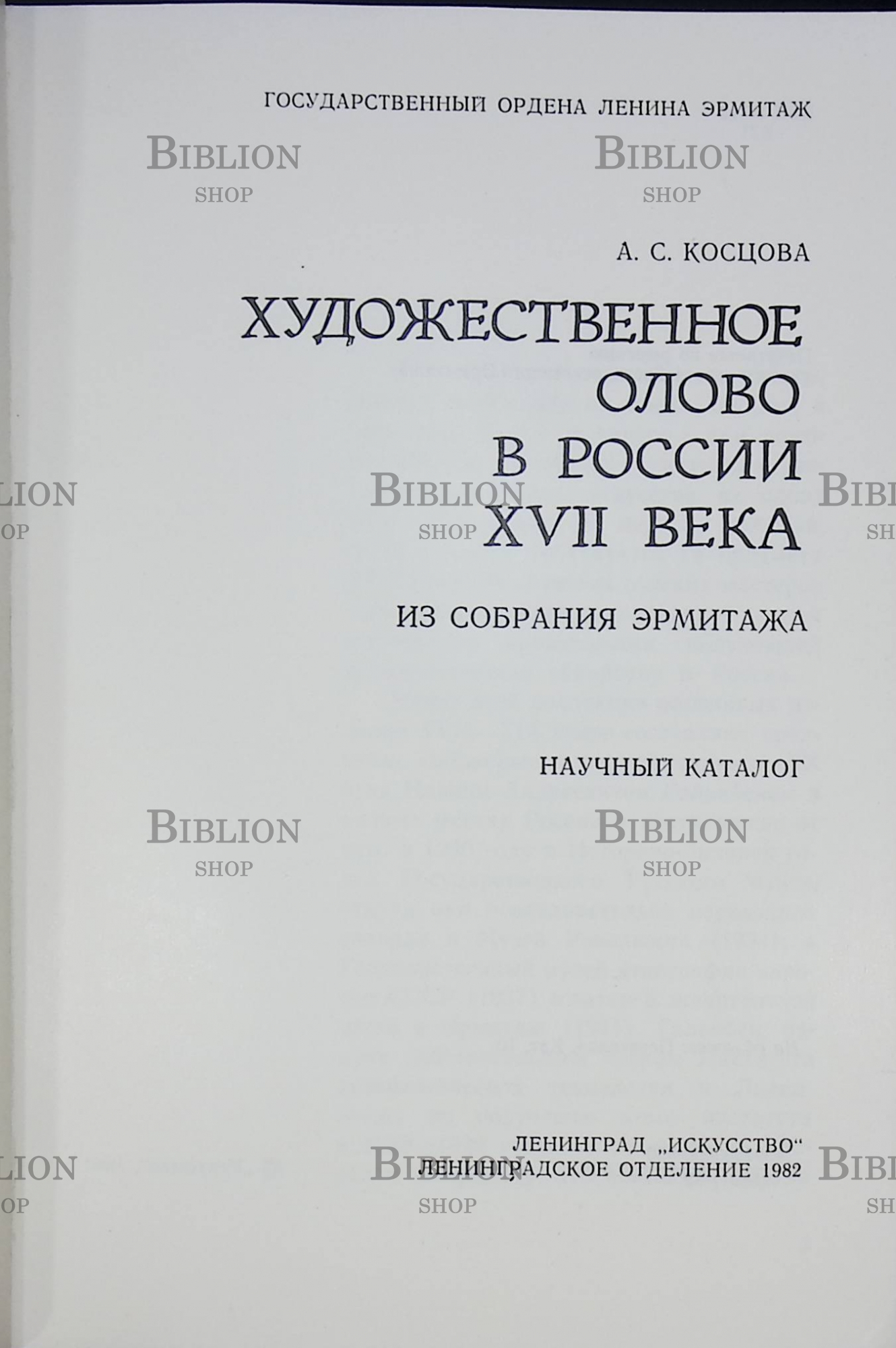 "Художественное олово в России ХVII века (из собрания Эрмитажа)" Косцова А. С.