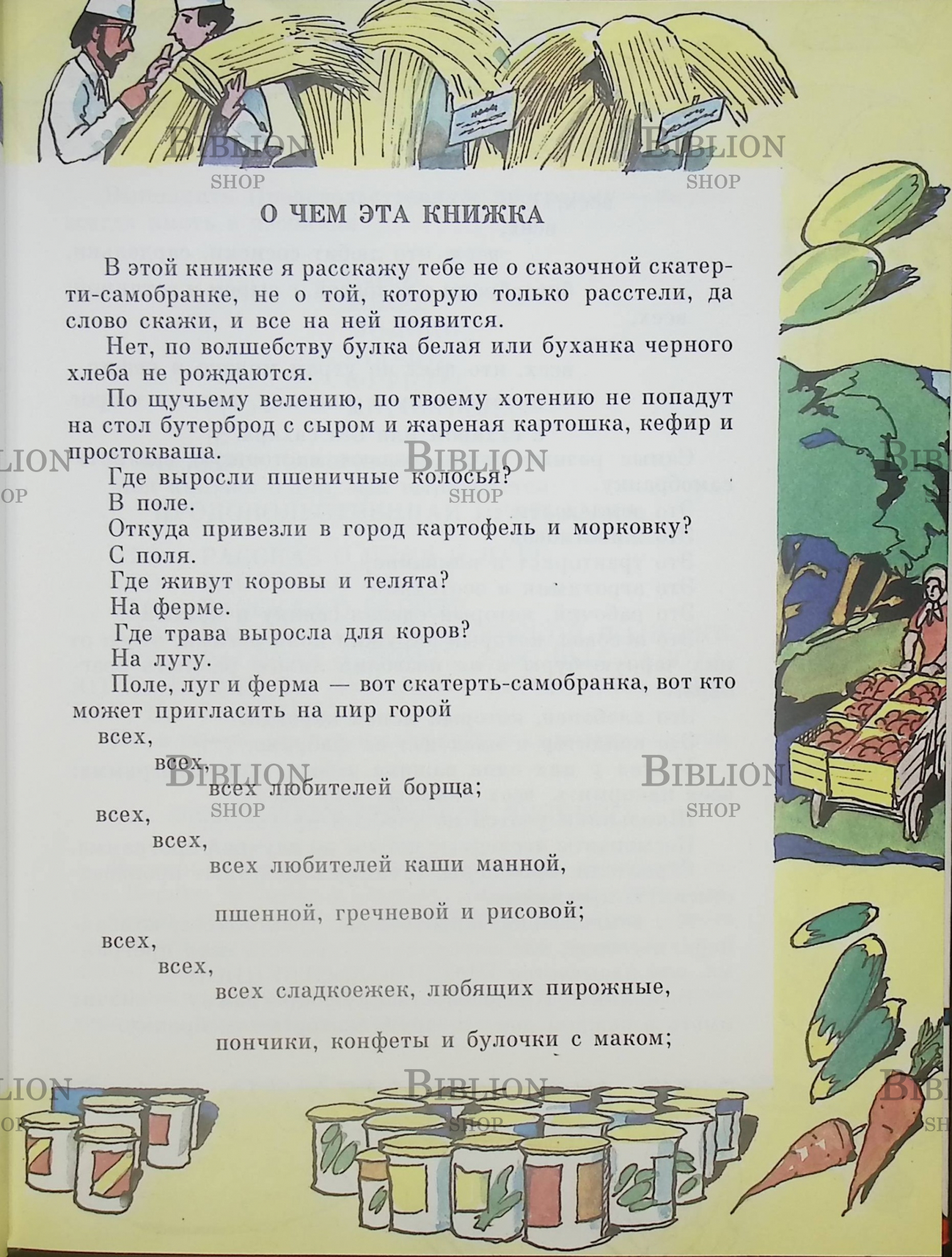 Цветные полностраничные рисунки И.Кабакова .Книга для младшего школьного возраста. про сельское хозяйство, про то как вырастить хлеб, мясо, молоко и другое. В доступной форме ребята узнают: Где выросли пшеничные колосья. откуда привезли в город картофель. Где живут коровы и телята. Где трава выросла для коров. Книга рассказывает о том как трудятся земледельцы, животноводы, мелиораторы, трактористы, хлебопеки и кондитеры, а также научные работники чтобы помочь сельскому хозяйству....