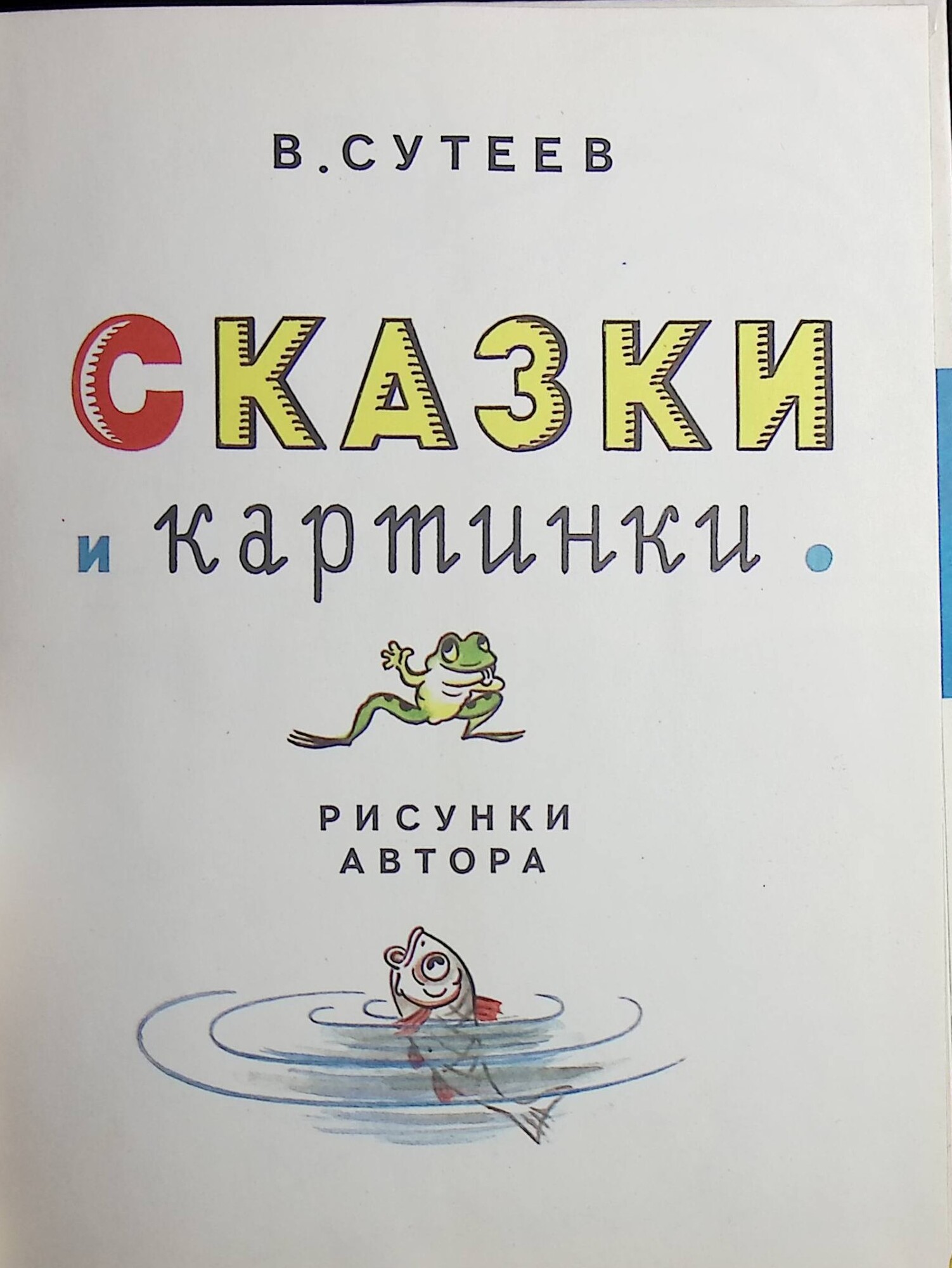 Эта книга живет на свете уже много-много лет. И если ты возьмешь ее в руки и покажешь своей бабушке, она воскликнет: "Ой! Ну надо же! Я тоже читала её в детстве!" И эту книгу придумал, написал и нарисовал Владимир Григорьевич Сутеев, известный художник-мультипликатор, и назвал её "Сказки и картинки". Сказки в ней получились с такими радостными и яркими картинками, что сразу полюбились всем. Полюби их и ты, ведь они добрые и весёлые. Потом (когда вырастешь) расскажешь их своим детям и внукам.