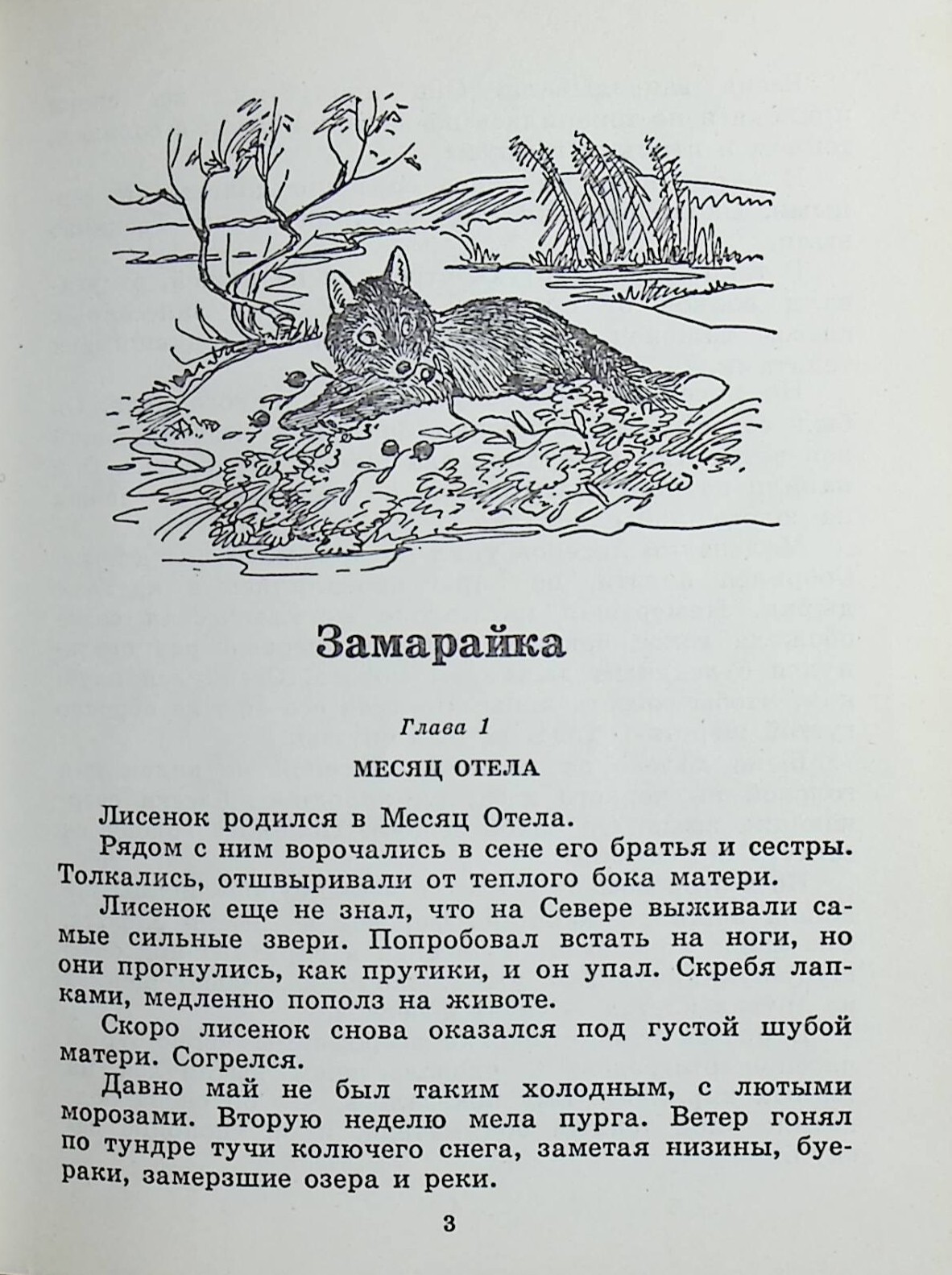 Герой заглавной повести "Замарайка" - лисенок. Он родился в Месяц Отела, когда в стадах оленеводов появляются олешки, в норах песцов - щенки и, прочерчивая небо, летят в тундру стаи лебедей, гусей и уток. Встреча с Замарайкой изменила поведение ненецкого мальчишки Хосейки. Он будто впервые увидел красоту тундры, услышал звенящую песнь ручьев. Понял, что главная обязанность охотника не убивать зверей и птиц: их надо охранять. Это было открытием, и он стал искать звонкие слова и слагать стихи. Так родился поэт.