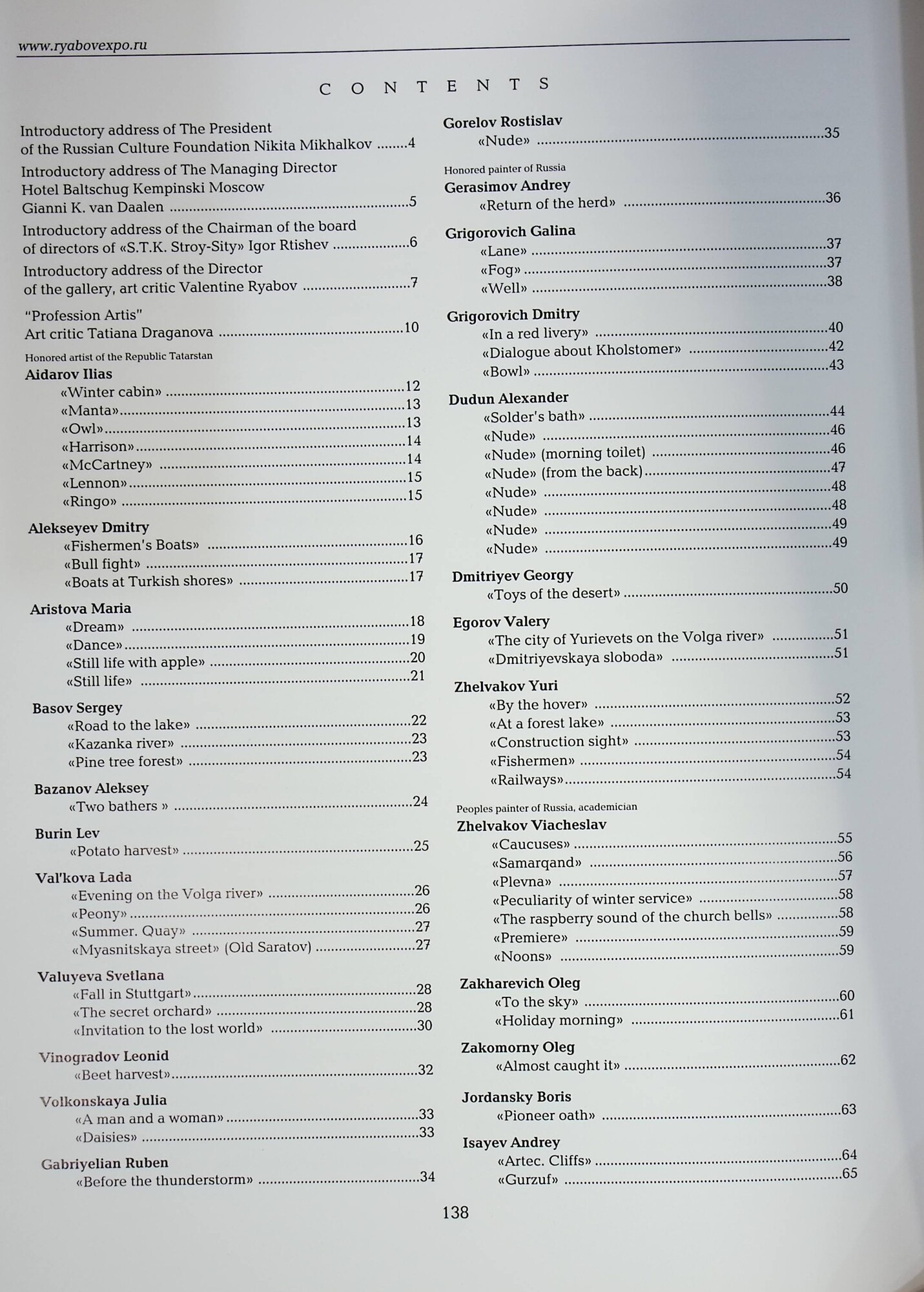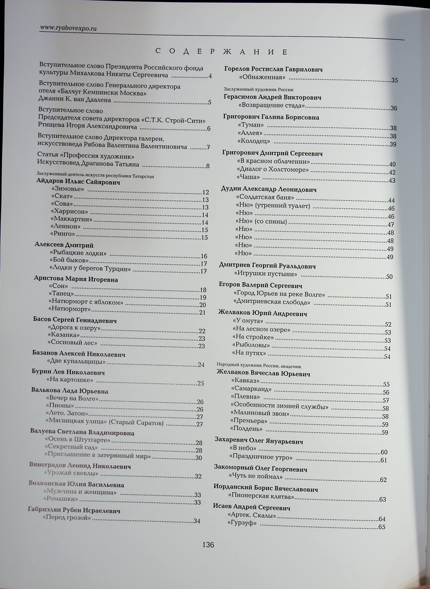 В концепции издания положено представление об исключительно широком диапазоне возможностей отечественных мастеров живописи и ваяния, в нем собраны репродукции работ современных талантливых художников, прошедших замечательную академическую выучку и черпающих вдохновение в национальной духовности. Представлено творчество Айдарова И., Аристовой М., Басова С., Сатарова М., Дмитриева Г., А. Суворова, С. Шлячкова и др. выдающихся мастеров.