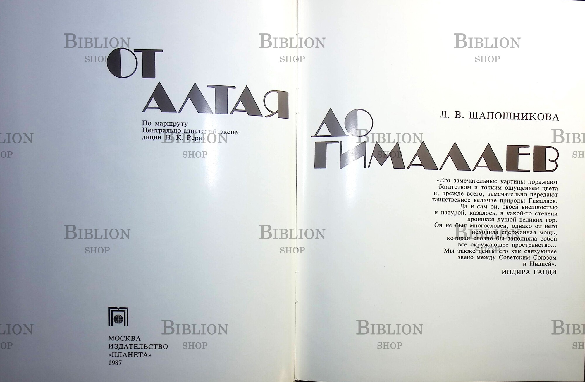 Главная Интернет-магазин Букинистическая литература История Культура. История. Исторические науки Шапошникова Л. В. "От Алтая до Гималаев: По маршруту Центрально-азиатской экспедиции Н. К. Рериха"