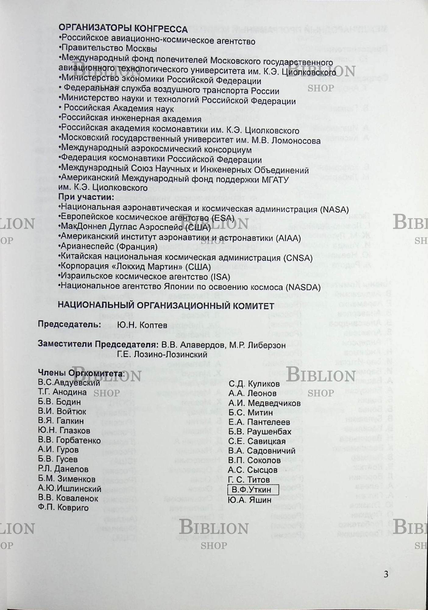 3-ий Международный Аэрокосмический Конгресс (IAC'2000 ) конференция