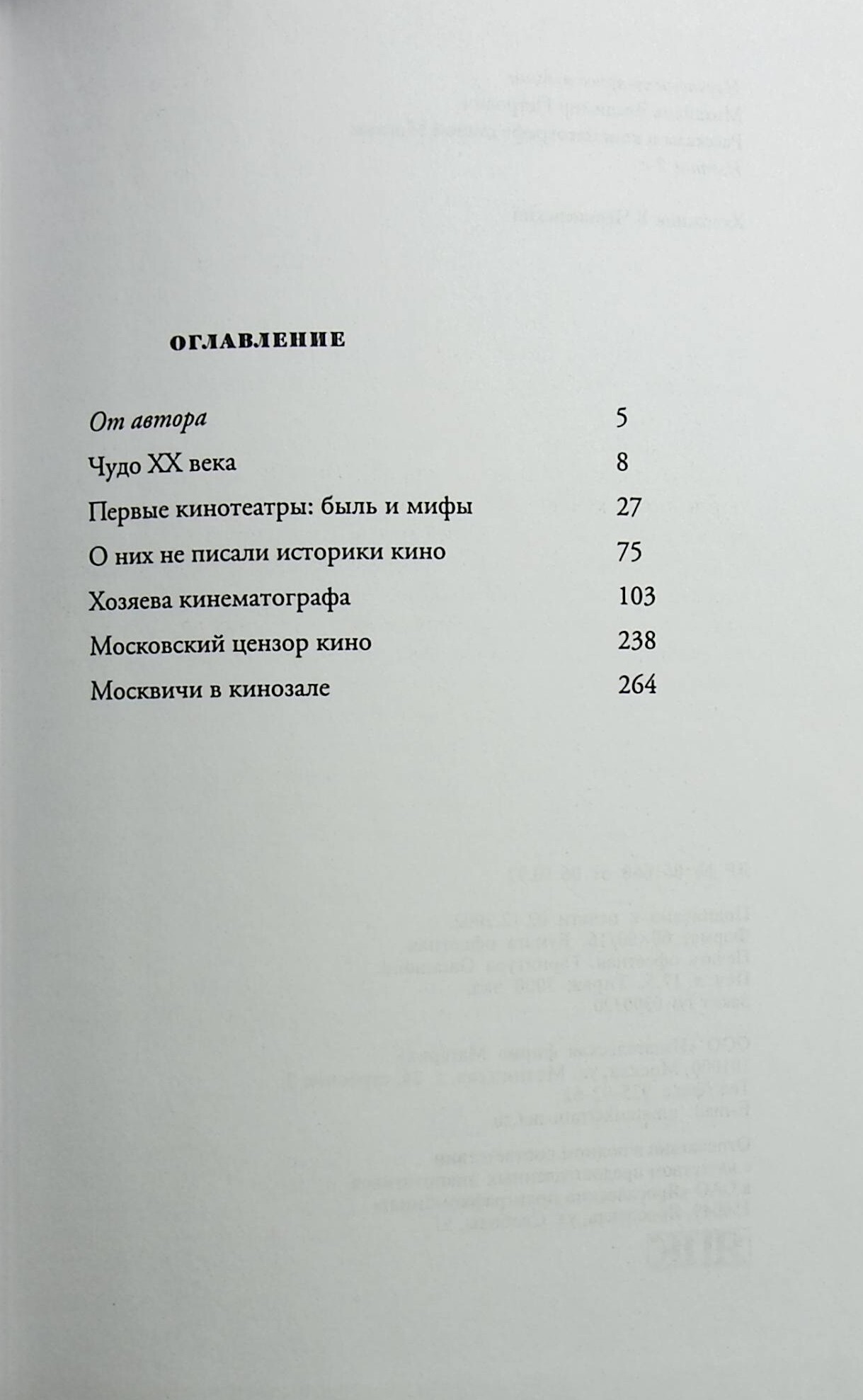 Книга написана в жанре краеведческого очерка и впервые посвящается людям, непосредственно создававшим кинематограф России, - кинопредпринимателям, прокатчикам, владельцам кинотеатров, а также первым цензорам кино. Вместе с автором читатель совершит путешествие по старым московским улицам и узнает, где находились первые синематографы и киноателье. Популярная форма изложения делает книгу интересной для широкого круга любителей кино и особенно для москвичей.
