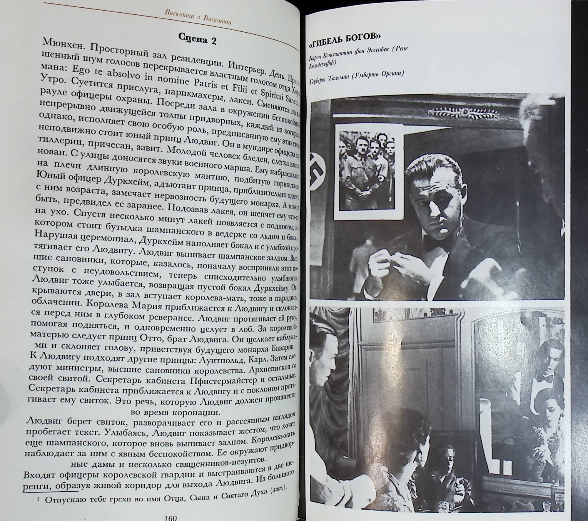 В сборник вошли сценарии его фильмов "Гибель богов", "Людвиг" (о короле-меценате Людвиге II Баварском), "Семейный портрет в интерьере", а также интервью и статьи Висконти о его работе в театре и кино.
