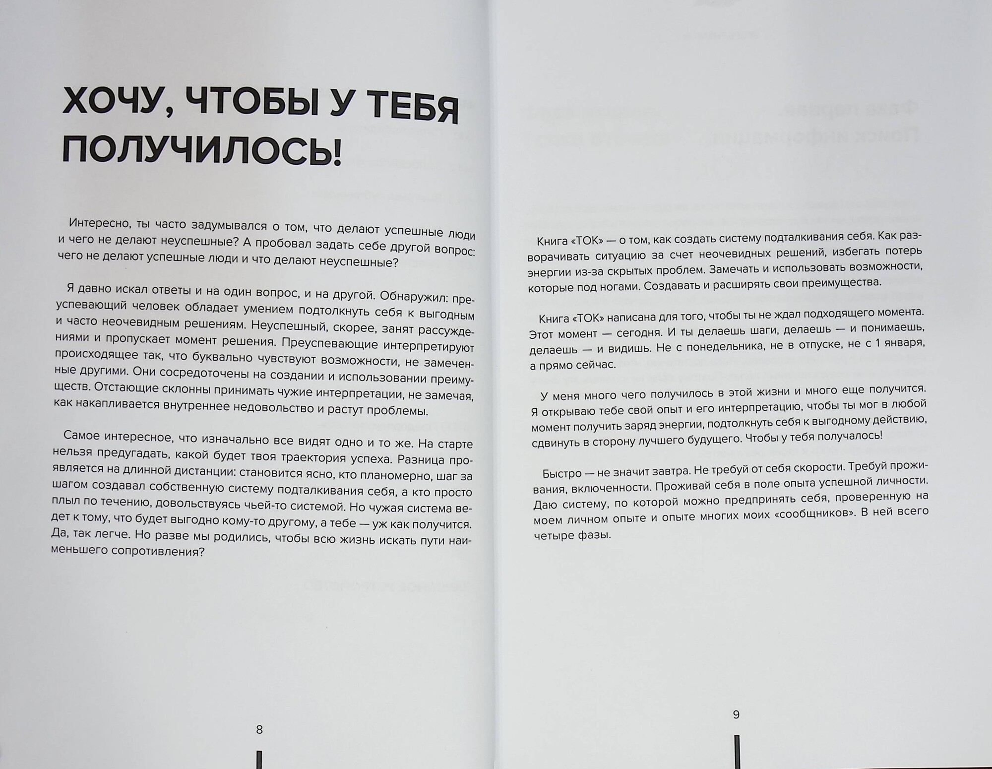 Автор определил главное: чего не делают успешные люди и что делают неуспешные. Мотивационная сила книги в самом слове «ТОК», направленной энергии, которая помогает делать выгодные шаги без потерь. Это power bank для тех, кто хочет строить свою жизнь сам, достигать высоких результатов и готов это делать прямо сейчас. Книга заряжена искренним желанием автора: «Хочу, чтобы у тебя получилось!»