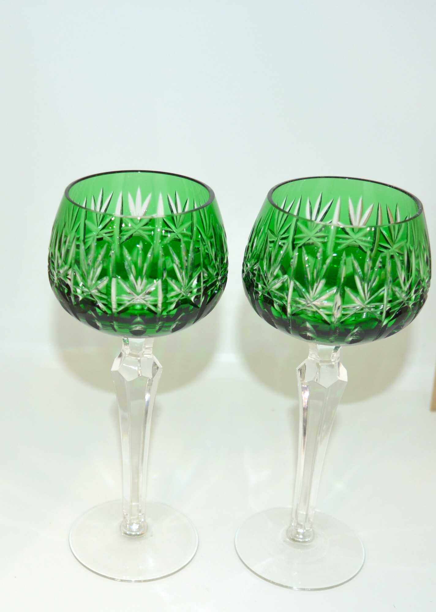Красивые бокалы зеленого цвета (объем 200 мл) на фигурной ножке. Накладной цветной хрусталь,ручная алмазная грань.