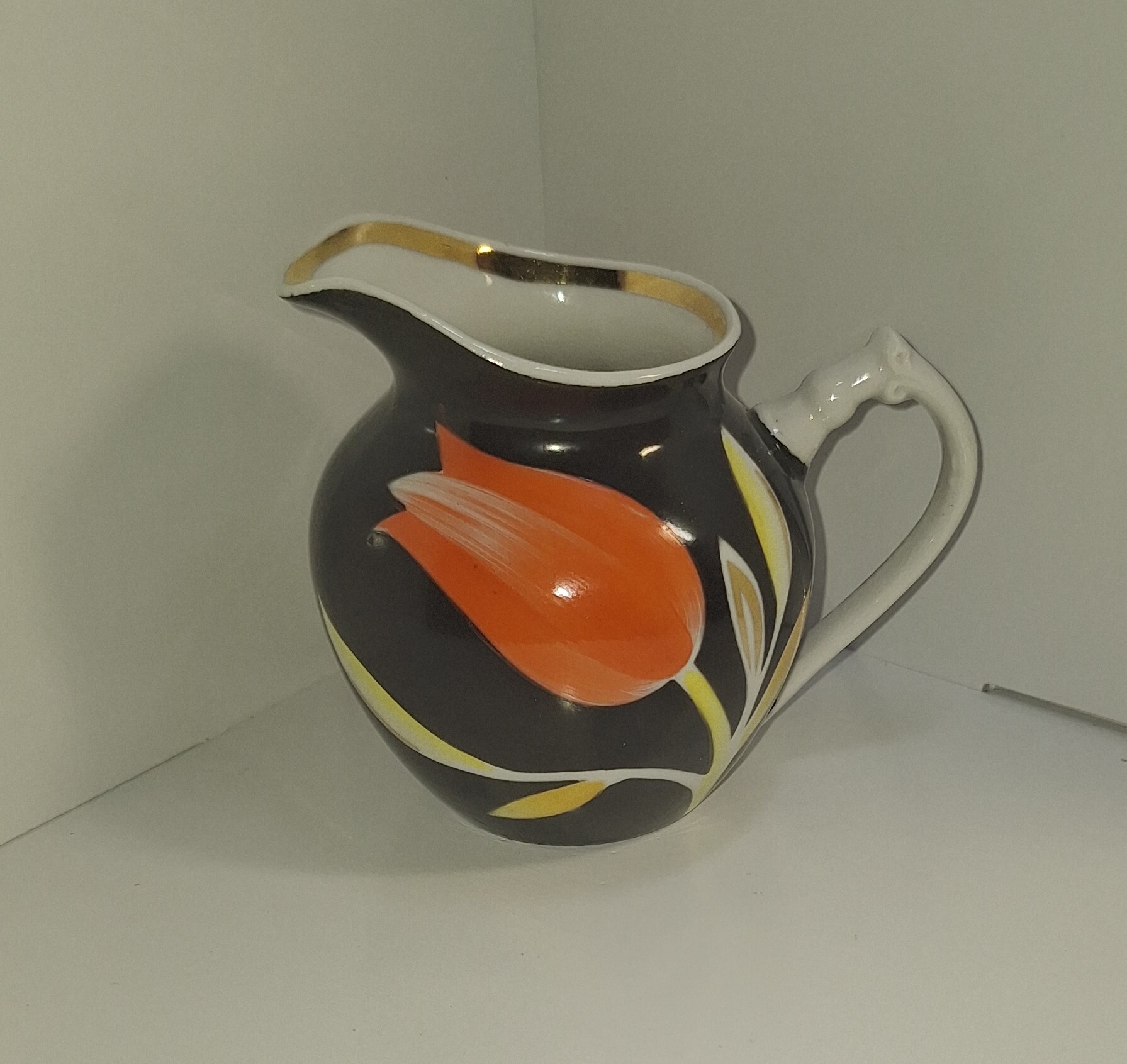 Молочник винтажный из сервиза "Красный тюльпан" ( Дулево,СССР 1968-1991 гг.)