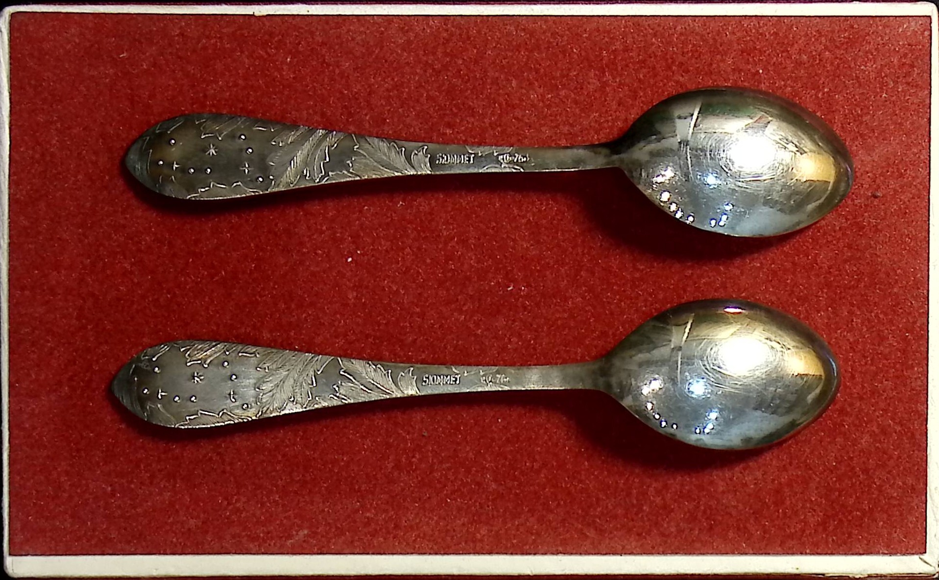 Набор чайных ложек в коробке 5 ЮММЕТ (СССР,винтаж,1975 г,мельхиор)