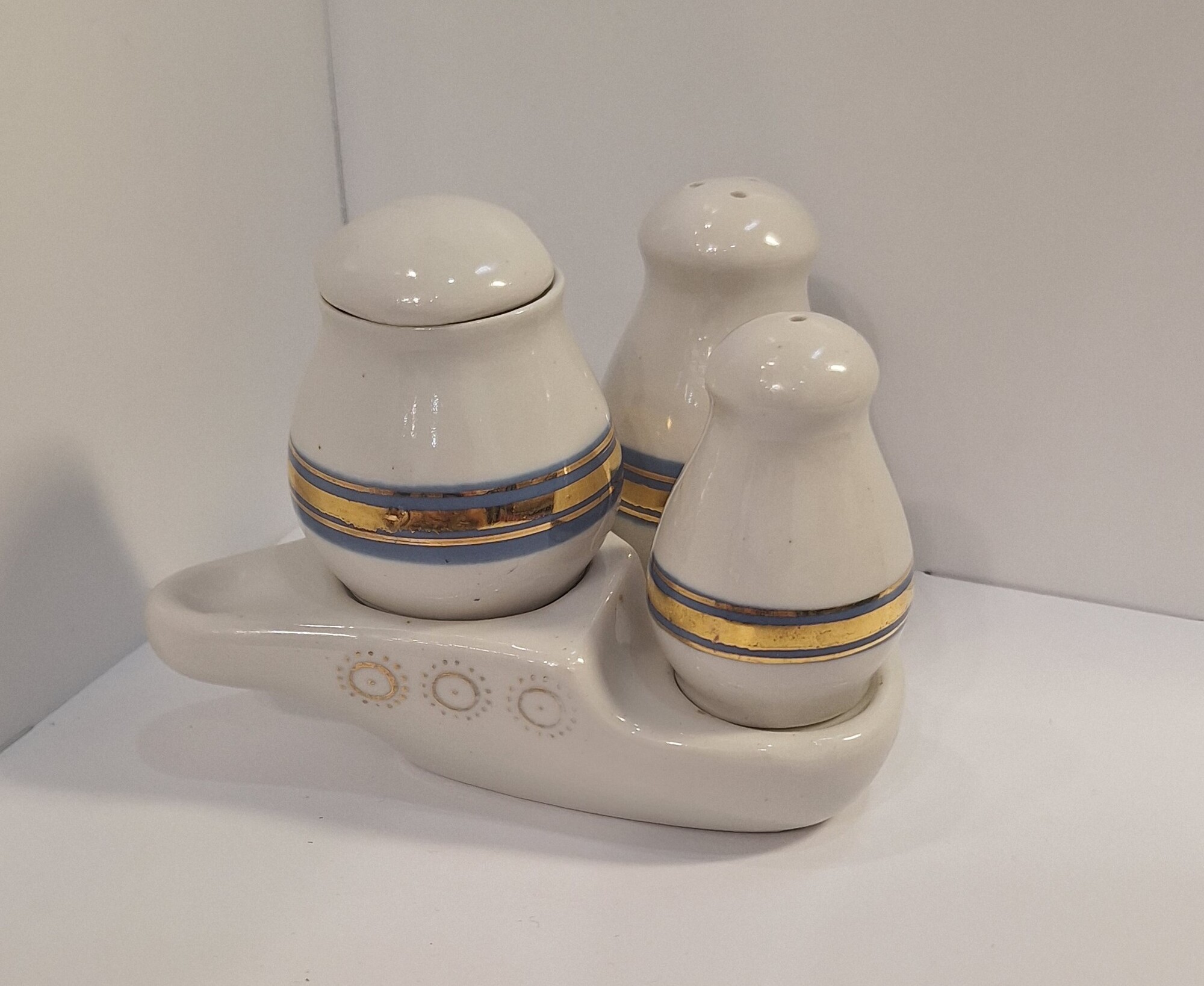 Набор для специй на подставке "КОРАБЛЬ" ( СССР,фарфор, Полонне 60-70 гг)