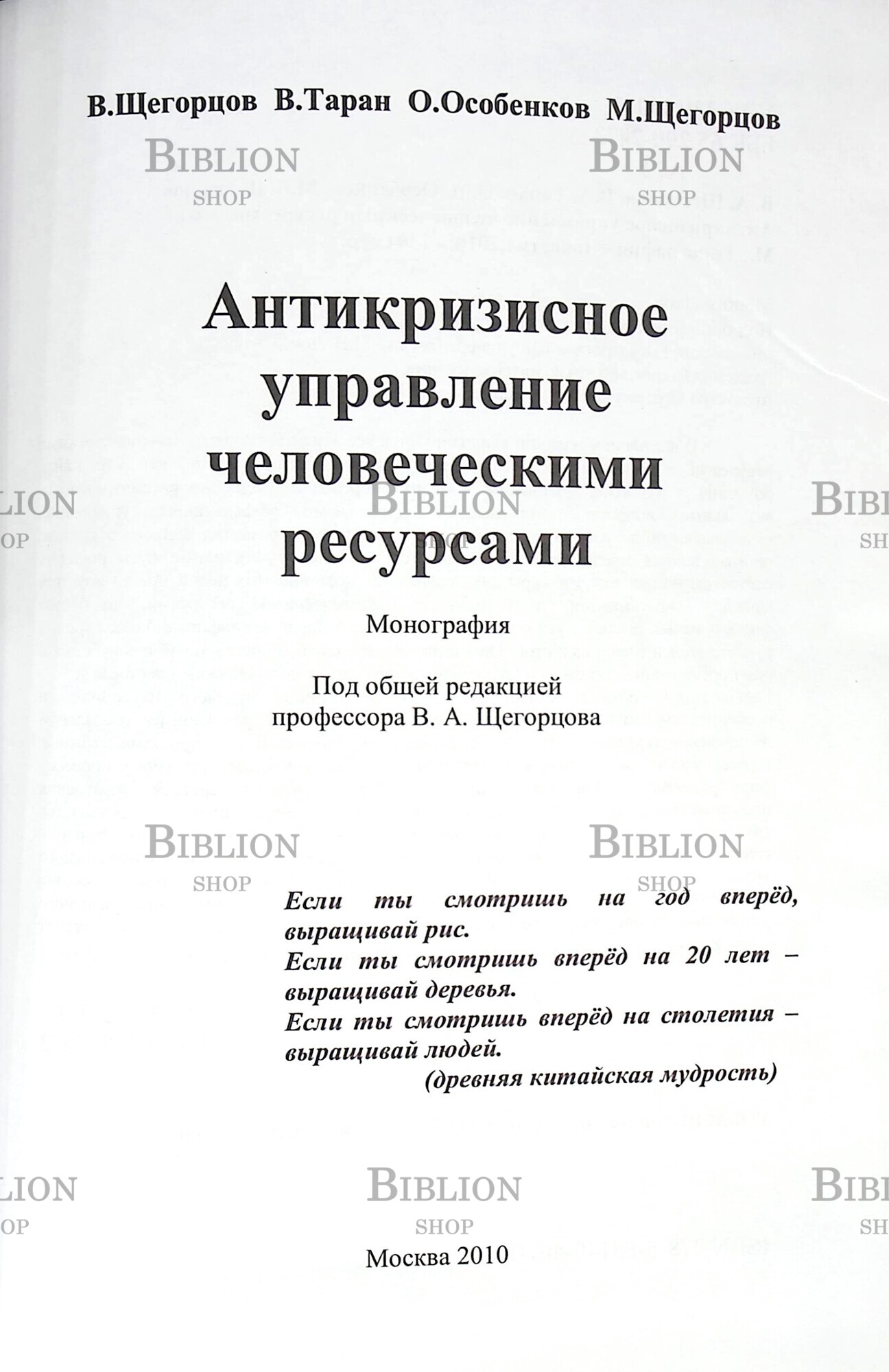 Антикризисное управление человеческими ресурсами Щегорцов В.,Таран В.,Особенков О.,Щегорцов М.