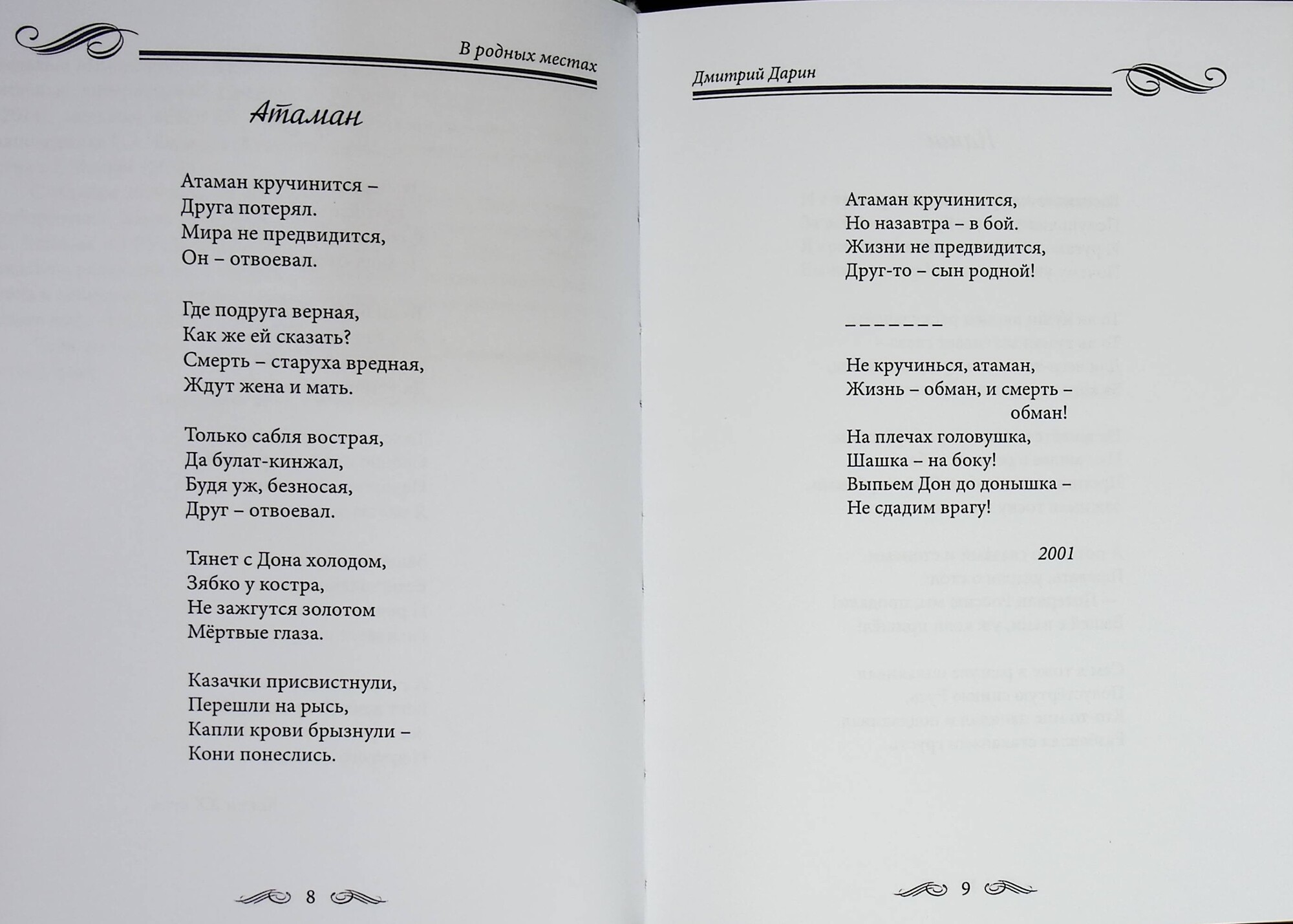 В восьмом по счёту, поэтическом сборнике " В родных местах" одного из самых русских поэтов России, члена СП России, ЛНР и ДНР Дмитрия Дарина собраны стихотворения последних двадцати лет, посвящённые разным городам и весям нашей Родины, её заповедным уголкам, лесам, полям, родникам и рекам. И людям, которые видят, ценят и оберегают красоту своих родных мест.