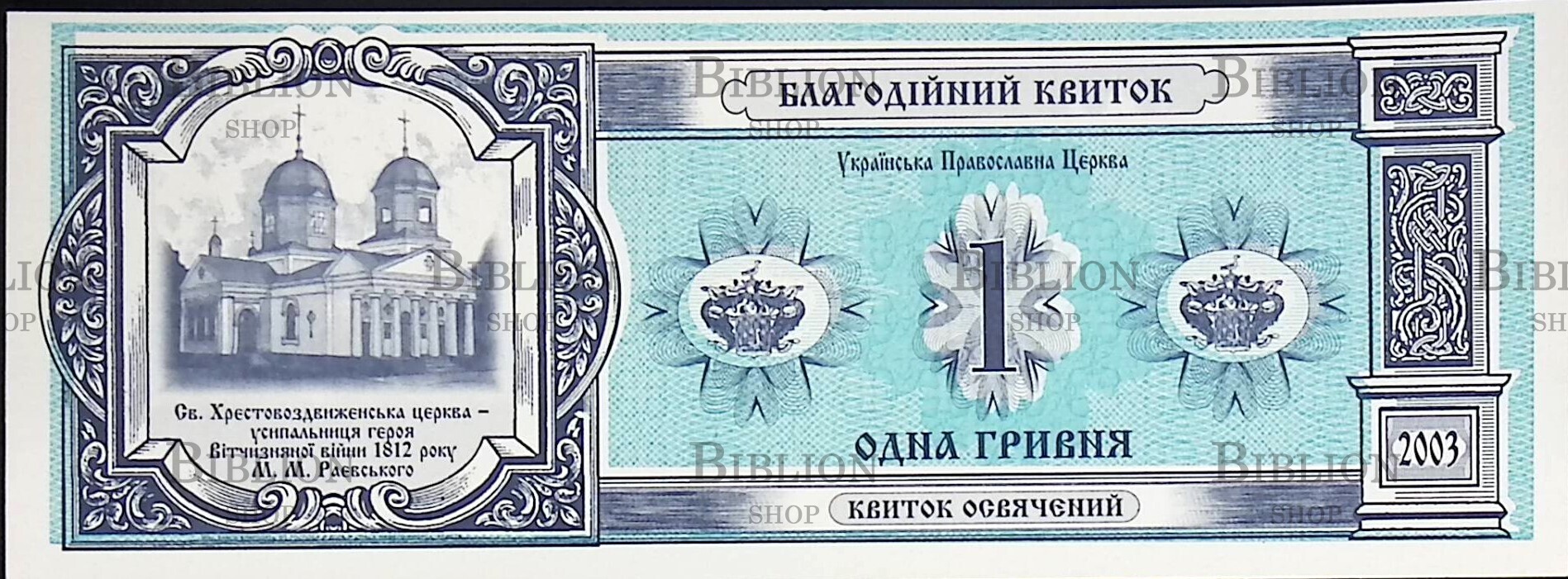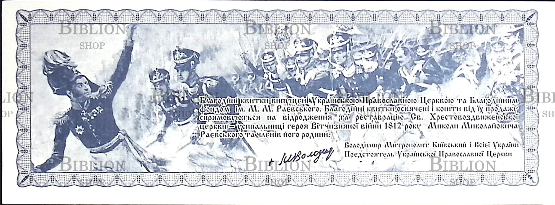 Благотворительный билет выпущен Украинской Православной Церкви Благотворительном фондом им. М.М. Раевского