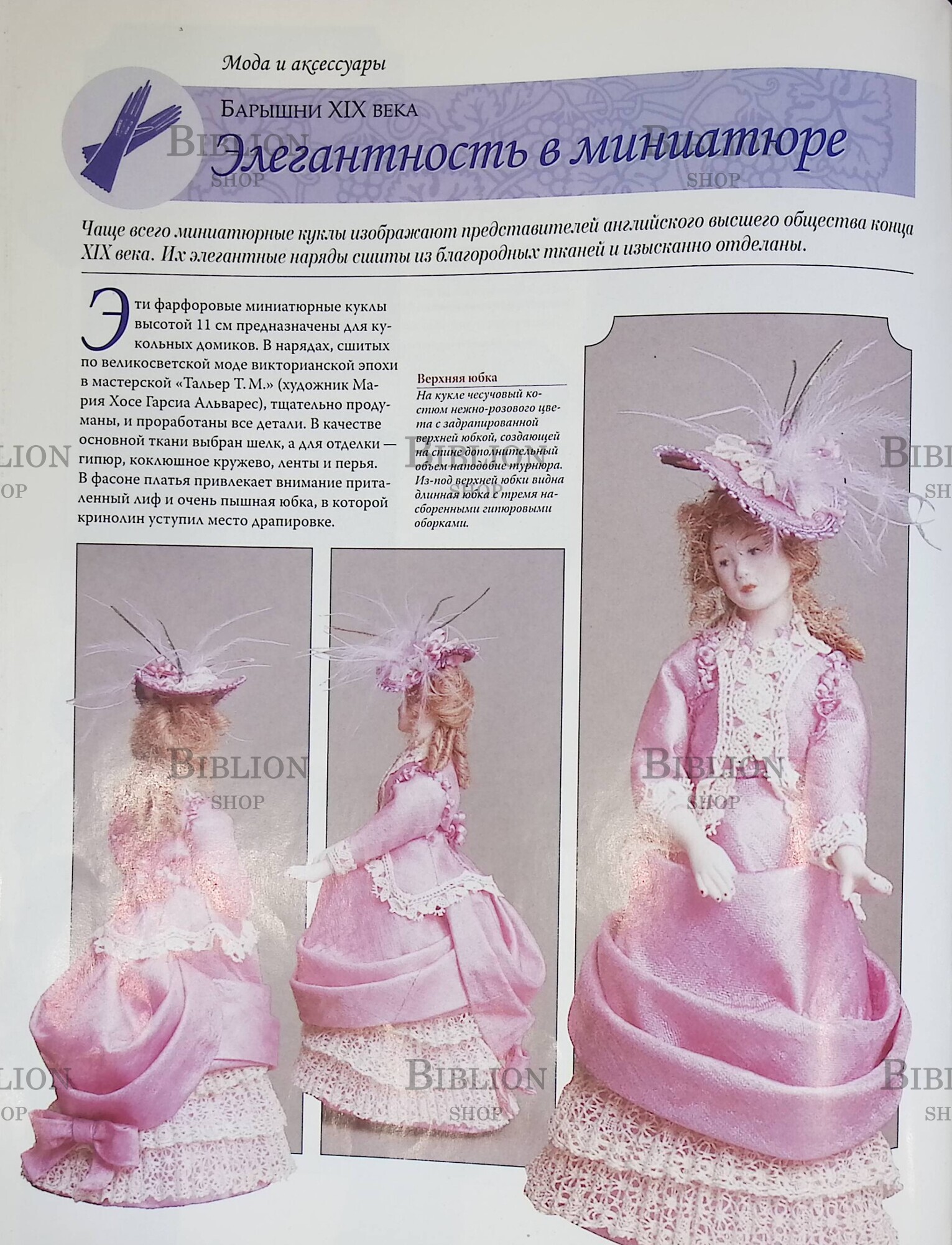 Разделы журнала посвящены истории кукол, моде различных эпох, стран и континентов, рассказы о героинях и авторах романов о них.